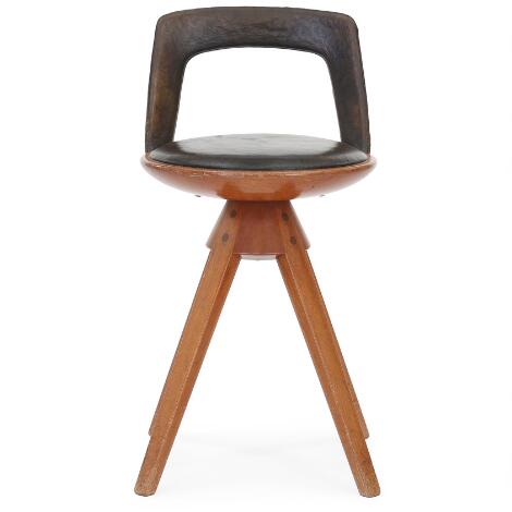 Tove & Edvard Kindt-Larsen: Drejestol af massiv mahogni, opsat på skråtstillede, tilspidsende ben.