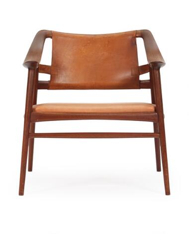 Rolf Rastad & Adolf Relling: "Bambi". Hvilestol med stel af teak. Ryg udspændt med patineret kernelæder.