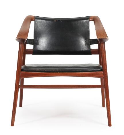 Rolf Rastad & Adolf Relling: "Bambi". Hvilestol med stel af teak. Ryg udspændt med sort kernelæder.