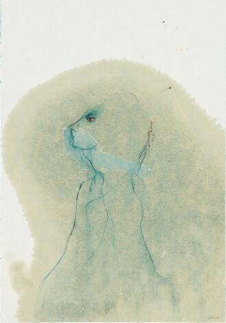Cathrine Raben Davidsen: Uden titel. Signeret CRD 18. Mixed media på papir. Bladstørrelse 39 x 28 cm.