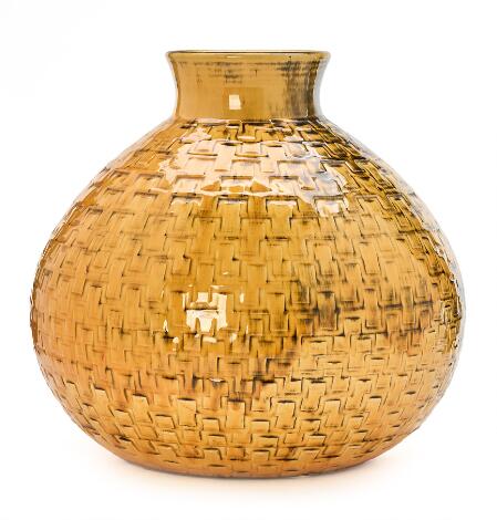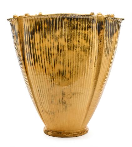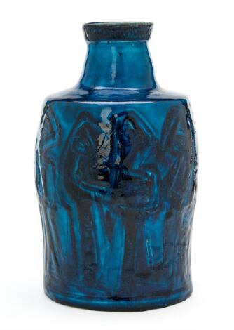 Svend Hammershøi: Gulvvase af lertøj i oval form, modelleret med ornamenter i relief. H. 52,5.