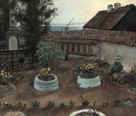 L. A. Ring: “Kirkegaarden i Vejlø". Usigneret. Betegnet på blændrammen. Olie på lærred. 46 × 54.