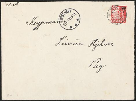 1940. 20/15 øre. Single på brev (let afklippet top) annulleret med flot og centralt stjernestempel SKAALEVIG og sidestempel THORSHAVN 22.11.40.