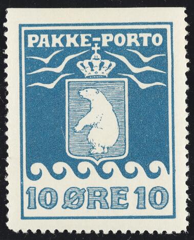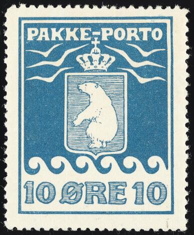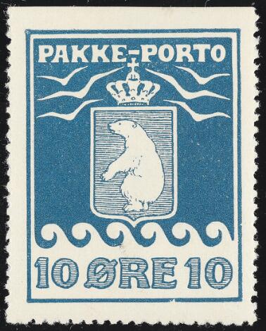 1910. Thiele. 10 øre, 2. tryk, UTAKKET NORD, pos. 1 "HAK I RAMME UNDER E". Pænt ubrugt mærke. Plet på bagside uden gumme ved bjørn.