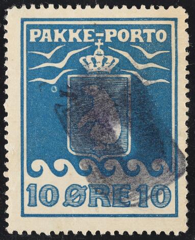1905. 10 øre. Eksemplar annulleret med skjoldstempel.
