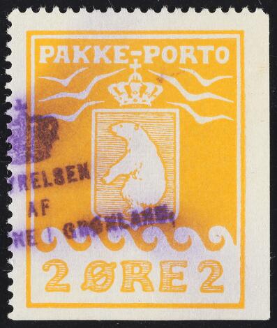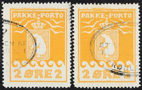 1915. 2 øre. 2 stemplede eksemplarer med variant "EKSTRA RAMMELINIE FOROVEN"