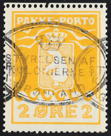 1915. 2 øre, TAKKET 2 SIDER. Stemplet eksemplar.