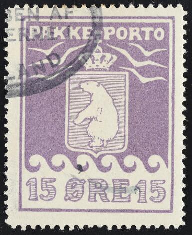 1915. 15 øre. Pænt hjørnestemplet eksemplar.