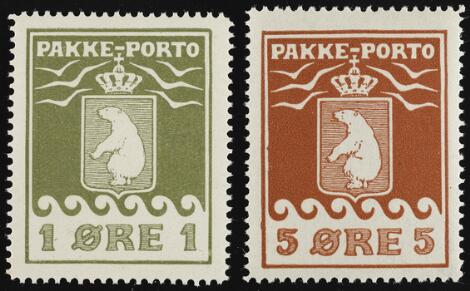 1915. 1 øre og 5 øre, 2. tryk. 2 flotte postfriske mærker. Begge signeret Wahl BPP og 5 øre også med attest LN.