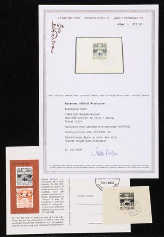 1940-41. Prov. 1. oplag. Komplet sæt på brevstykker/Talon samt 60/6 øre på komplet lille Rek.-brev. Alle med attest.