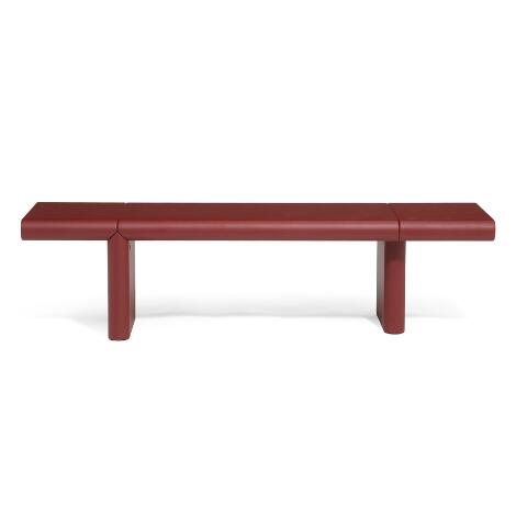 Zaven: "Zavolo". Sofabord af amaranth rød komposit. Model 791. Formgivet i 2024. Udført hos Zanotta. H. 30. L. 150. B. 42.