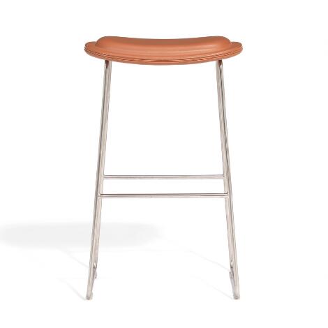 Jasper Morrison: "Hi Pad" barstol stel af stål, sæde med cognacfarvet læder. Udført hos Cappellini.