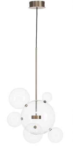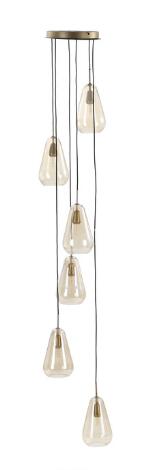 Nuura: "Anoli 6 Nordic Gold." Loftlampe med seks dråbeformede glasskærme. Udført hos Nuura.