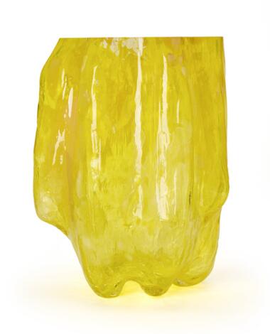 Åsa Jungnelius: "Crackle". Stor vase af mundblæst, gult krakeléglas. Udført hos Kosta Boda, Sverige. H. 37,5.