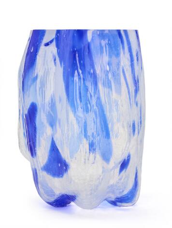 Åsa Jungnelius: "Crackle". Stor vase af mundblæst, blåt og klart krakeléglas. H. 38.