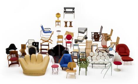 Hans J. Wegner, Charles Eames, Le Corbusier, Verner Panton, m.fl.: Stor samling af miniature stole. (67)