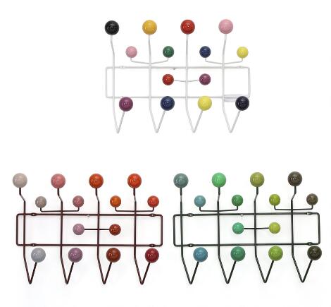 Ray Eames, Charles Eames: “Hang it all”. Tre knagerækker med stel af lakeret metal. Kugleformede toppe af bemalet træ. Formgivet 1953. Udført hos Vitra. (3)
