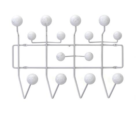 Charles Eames, Ray Eames: "Hang It All", Special Edition, nr. 056/999. Knagerække med stel af pulverlakeret stål, kugleformede toppe af Carrara Marmor.