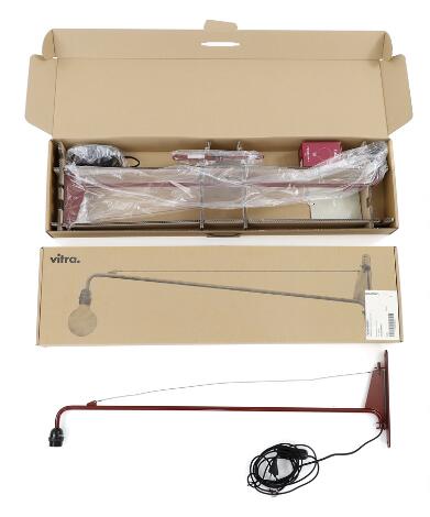 Jean Prouvé: "Petite Potence", japansk rød. Et par væglamper af rødlakeret metal. Udført hos Vitra. H. 30. L. 104. (2)