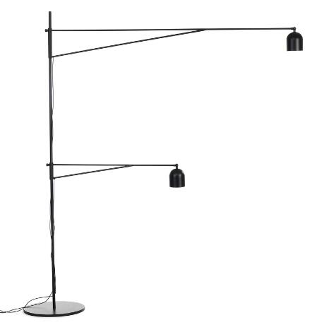 Megan Hesse & Andrea Kleinloog: "Awkward Lamp". Standerlampe af sortlakeret metal med to svingarme. H. 192.