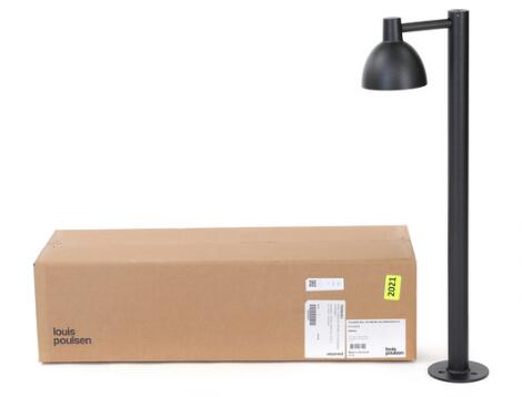 Louis Poulsen Lighting: “Toldbod 155 pullert”. Udendørslampe af sortlakeret metal. Udført hos Louis Poulsen. H. 90. Skærmdiam. 15,5.