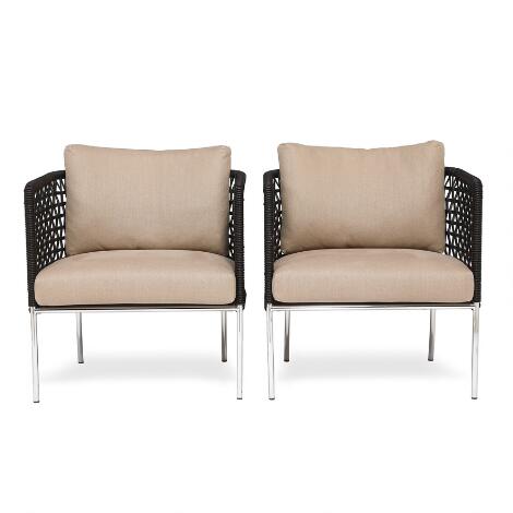 Piero Lissoni: “Cafè”. Et par armstole med ben forkromet stål. Sider og ryg med flettet skind. (2)