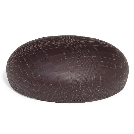 Nendo: "Dew" puf af auberginefarvet, flettet læder. Formgivet i 2009. Udført hos Moroso. H. 35. Diam. 100.
