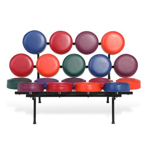 George Nelson: 'Marshmallow' sofa med stel af sortlakeret metal, hynder i sæde og ryg betrukket med kunstlæder. Vitra.