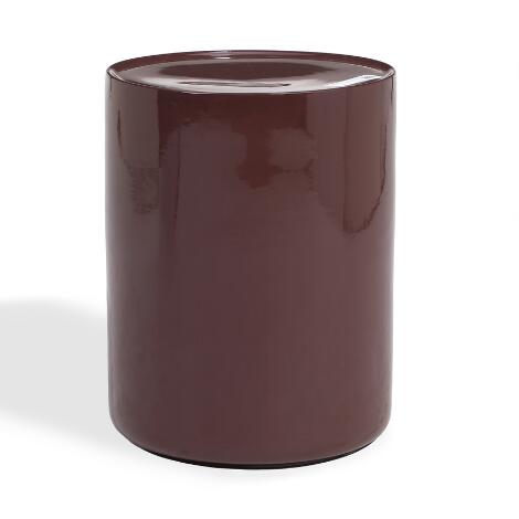 Luca Nichetto: "Torei", cylinder sidebord/piedestal af lertøj, dekoreret med aubergine farvet glasur. Udført hos Cassina. H. 51. Diam. 39.