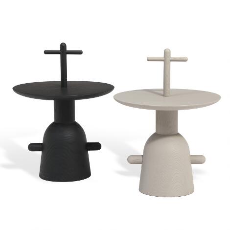 Jaime Hayon: "Réaction Poétique", To små sofaborde, af hhv. sort samt grå asketræ. Cassina. H. 64. Diam. 48. (2)