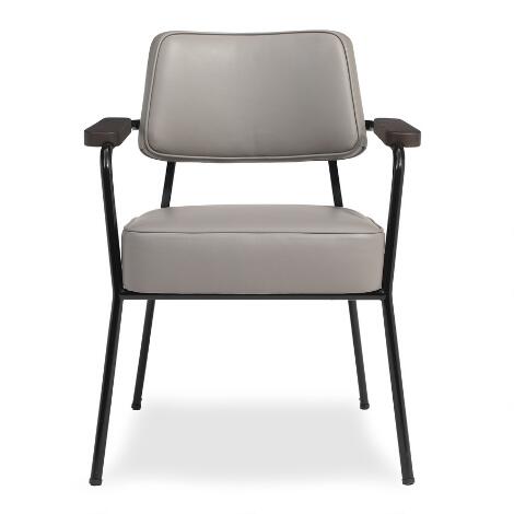 Jean Prouvé: "Fauteuil Direction". Armstol med stel af sortlakeret metal, sæde og ryg betrukket med skind. Udført hos Vitra.
