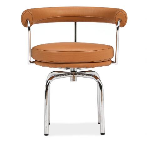 Charlotte Perriand, Le Corbusier: "LC 7". Armstol af forkromet stål med drejefunktion. Sæde, ryg og armlæn betrukket med cognacfarvet skind.