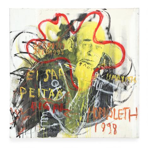 Kristian von Hornsleth: "Alvar Aalto". 1998. Signeret Hornsleth. Mixed media på perforeret lærred. 120 x 120 cm.