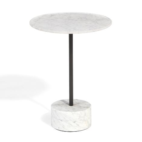 Piero Lissoni: "Marble Coffee Table 9", plade og base af hvidbroget carrara marmor. Udført hos Cassina. H. 49. Diam. 40.