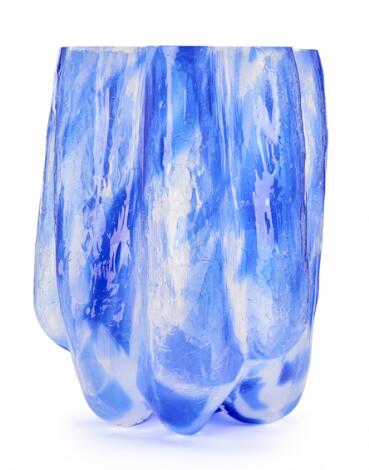 Åsa Jungnelius: "Crackle". A large vase of blue and clear crakcle glass. Manufactured by Kosta Boda, Sweden. H. 37 cm.