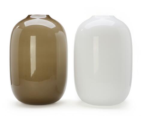 Giulio Cappellini & Antonio Facco: "Arya". Two floor vases of resp. smoke coloured glass undelaid with white and clear glass, and of white glass. (2)