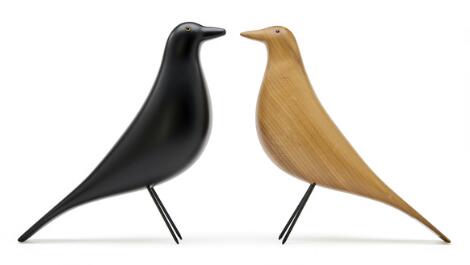 Charles Eames, Ray Eames: "House Bird". Eight bird figures of resp. black lacquered wood and walnut wood. H. 28 cm. (8)