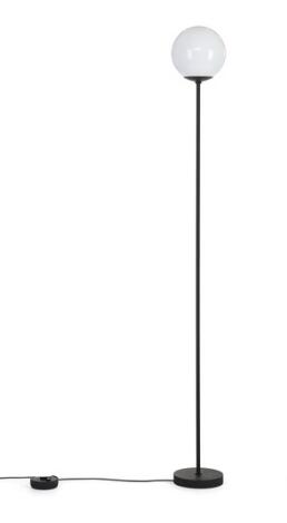 Gino Sarfatti: Floor lamp with black laqured metal stem and base, shade of white glass. Model 1081. H. 166 cm.