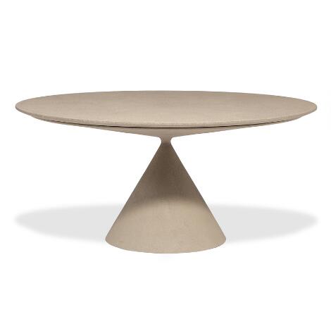 Marc Krusin: "Clay". Round dining table on a conical base, surface in sand-colored laminate. H. 76 cm. Diam. 160 cm.