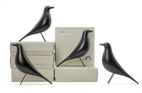 Charles Eames, Ray Eames: "House Bird". Six bird figures of black lacquered wood with black lacquered metal legs. Manufactured for Vitra. H. 28 cm. (6)