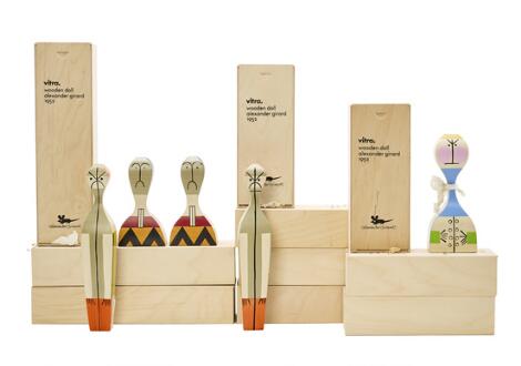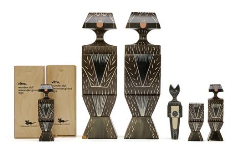 Alexander Girard: "Wooden dolls" of polychrome painted wood. Designed 1952. Made by Vitra.