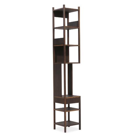 Achille Castiglioni: Lungangolo shelf of dark stained oak, left. Designed in 1991. Unmarked. H. 225. W. 36. D. 36 cm.