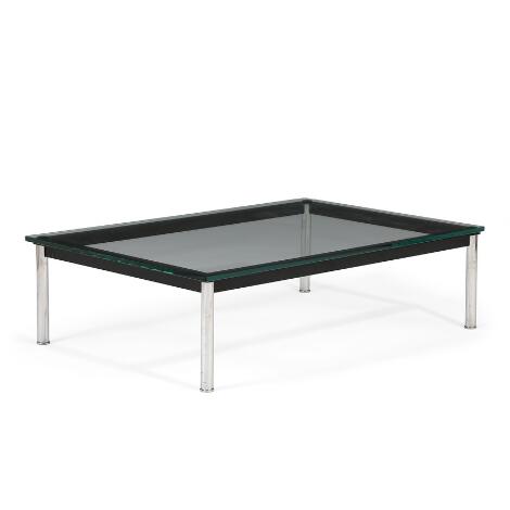 Le Corbusier: “LC 10”. Coffee table with steel frame. Glass top. Made byCassina. H. 32. L. 120. W. 80 cm.