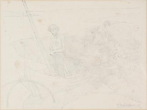 Pierre Puvis de Chavannes: "Le pauvre pêcheur", 1897. Signed in the print P. Puvis de Chavannes. Lithograph. Visible size 41 x 55 cm.