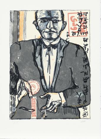 Kurt Trampedach: Self portrait. Signed Kurt Trampedach 78, Prøvetryk. Lithograph. Visible size 82×59 cm.