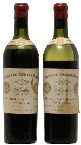 1 bt. Château Cheval Blanc, 1. Grand Cru Classé A 1947 C (ms). etc. Total 2 bts.