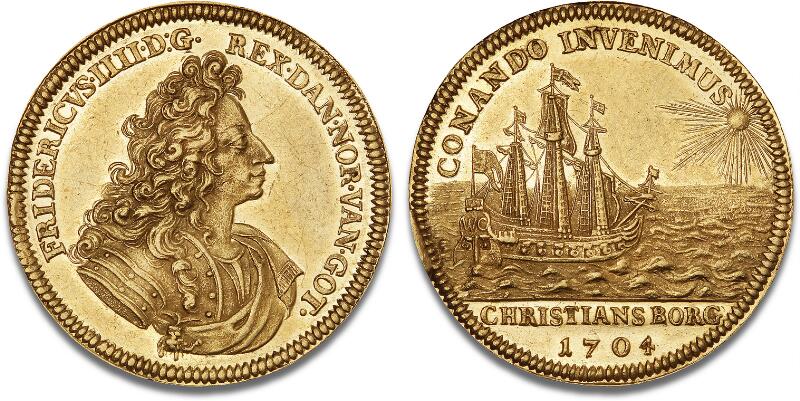5 dukat 1704, H 12, S 1. Estimate: DKK 250,000