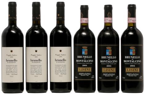 2542/32593 bts. Brunello di Montalcino, Poggio Antico 2004 A (hf/in). etc. Total 6 bts.