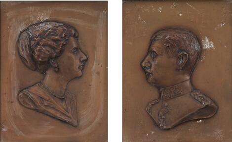 2545/8005LyngbyF. Comans: A pair of bronze portraits of Prince Albert and Princess Ortrud Glücksburg. 24 x 19 cm. (2)