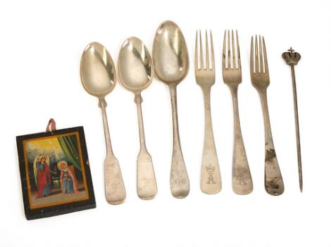 2545/8004Lyngby21 silver spoons and 20 -forks, monogram of Prince Albert of Glücksburg. Maker H.W. Kompff, Kassel 1797. (41)